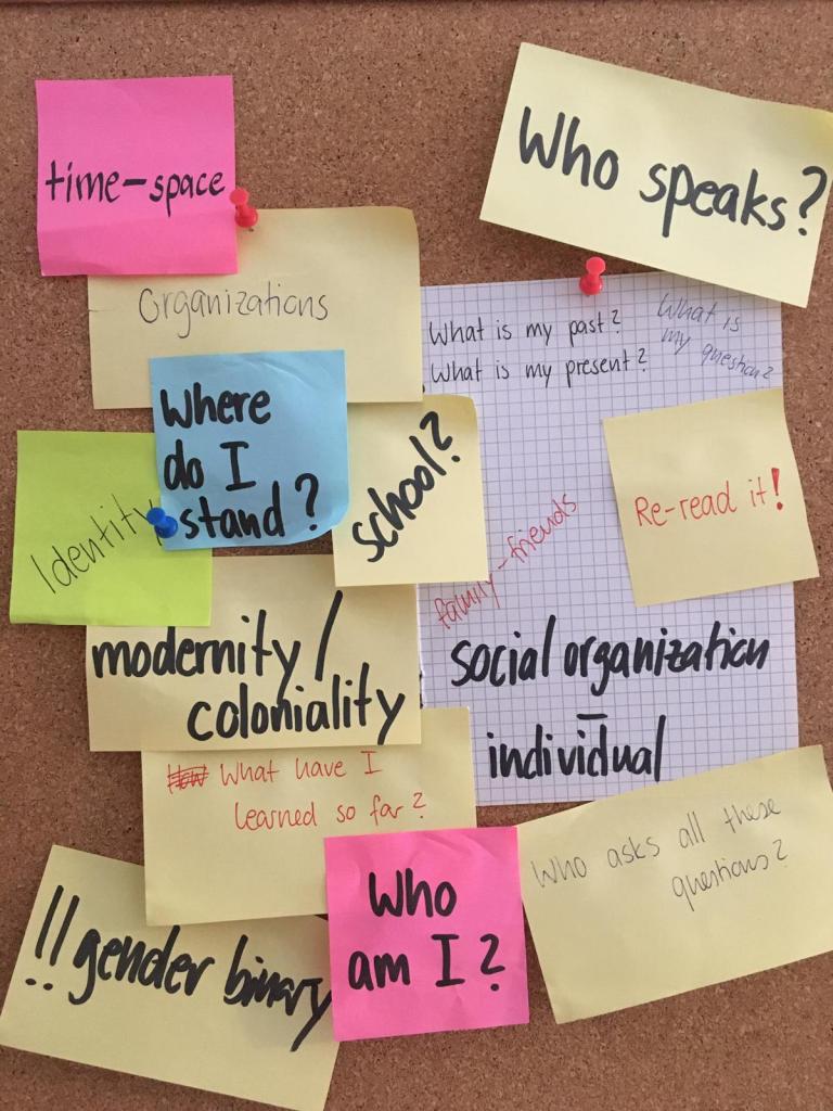 What do we mean when we speak about positionalities? What is my positionality and why is it important to ask this question before writing something someone else might read? In stark contrast to the positivist thinking of “modern” sciences and the call for or assumption of neutrality and objectivity, critical thinking and research demands to engage with one´s own positionality – mirroring not (only) our geographical location but rather our epistemological location and “interpretative horizon” (identity). It is not possible, neither desirable to detach from this – from the ways we see, interpret and understand the world. Modernity/ Coloniality[1] (to use Mignolo´s concept) did not only complicate the world for us by separating domains like the social from the political and economic … etc., but proposed the existence of a single, universal truth – that did and will never be able to capture the complex realities we[2] live. Further, it makes us believe that we can come to understand everything and everyone when using our rationality as independent autonomous beings, always thriving for “higher civilization”. We live in a world where minority knowledge and minority worldview were forcefully transformed into majority knowledge and worldview over hundreds of years. I have learned to interpret the world, my environment, my being and my country´s history from a Eurocentric perspective, that causes harm, violence, shame and ignorance until today, but at the same time encourages me to question the very framework I have been born and raised into. The ways we learned to act, think and be, in largely binary terms and categories – the ways certain experiences became essential and naturalized – leaving no space to question, counter and criticize without the danger to face resistance, rejection, harm, violence, or death. So what does it mean: positionality?