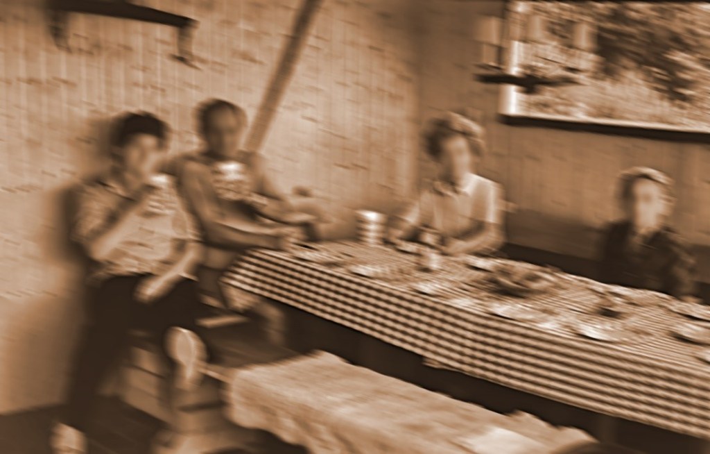 Auf dem Originalfoto ist links im Bild diese Frau zu sehen, rechts daneben ihre Zieh-Oma. Die beiden waren nicht verwandt, sie war in die Familie eingeheiratet, auch wenn nicht sehr nah. Trotzdem erzog sie die Frau, als Ersatz ihrer Oma. Trotzdem war sie ihre „Baba“.